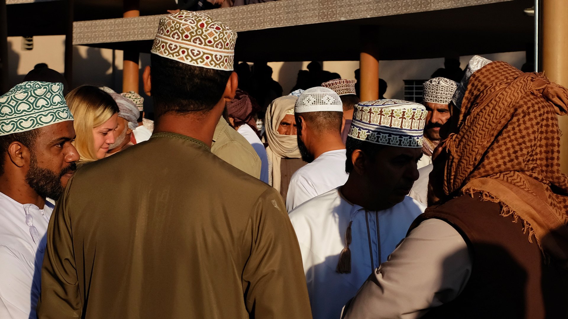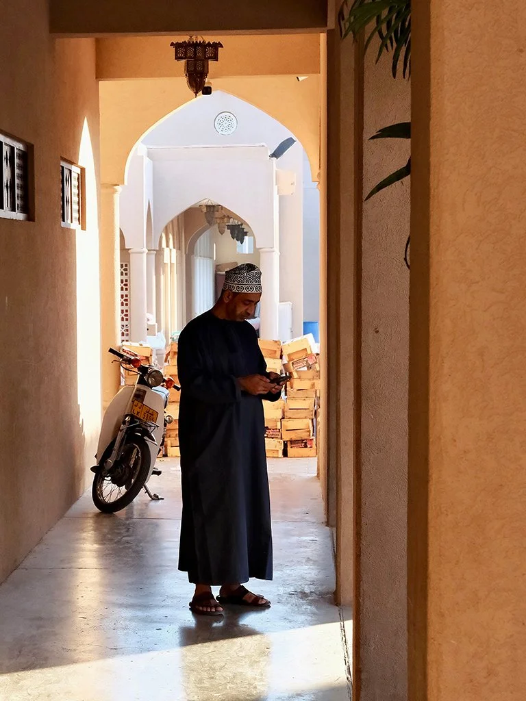 In the early morning, we follow the city's voices to the livestock market. What we find here is not a tourist spectacle, but everyday life in action. People have been trading and bargaining on this circular, open square for a long time. Nizwa was once an important stop along the caravan routes, and so the local cattle market was not only a place of trade, but also a social space: property and prices, experience and trust were openly exchanged here. A behaviour that seems to have remained unchanged to this day.